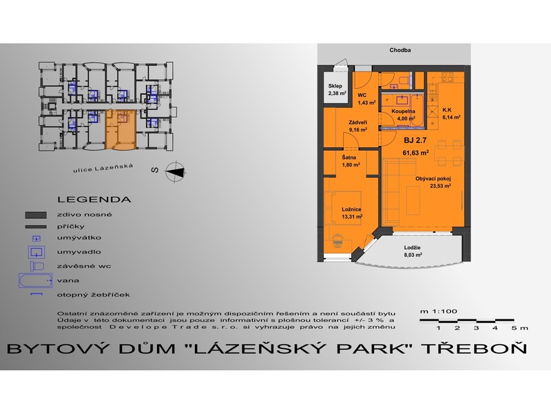 Bytový dům s 27 byty, nadstandartní vybavení, předokení hliníkové, žaluzie, trojitá vakuová okna, dubové plovoucí podlahy, podlahové elektrické topení v koupelně, v celém bytě je rozveden internet, je možno si zvolit poskytovatele. na střeše je FW k ohřevu teplé vody. O dům se stará a uklízí firma. Nábytek je kvalitní, včetně značkové kuchyně a spotřebičů. Předsíň má vestavěné skříně, stejně tak i ložnice. Vchodové dveře do bytu jsou od firmy NEXT, protipožární, protiprachové. Vnitřní dveře též dubové SAPELI.